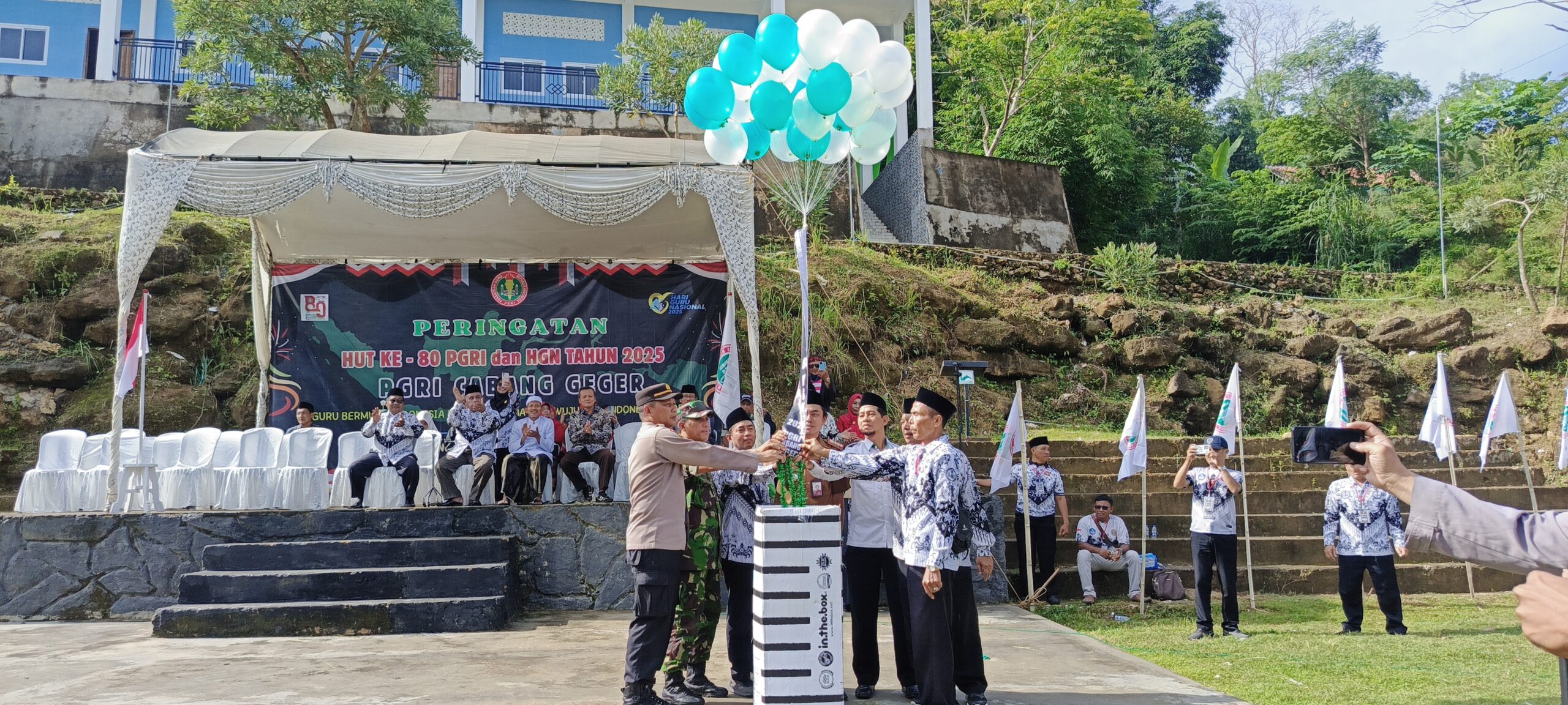 “Kami keluarga besar Kecamatan Geger mengucapkan selamat Hari Guru Nasional 2025 dan selamat ulang tahun PGRI ke-80. Tetap semangat mengabdi tanpa henti, mengajar dengan hati,” ujarnya.