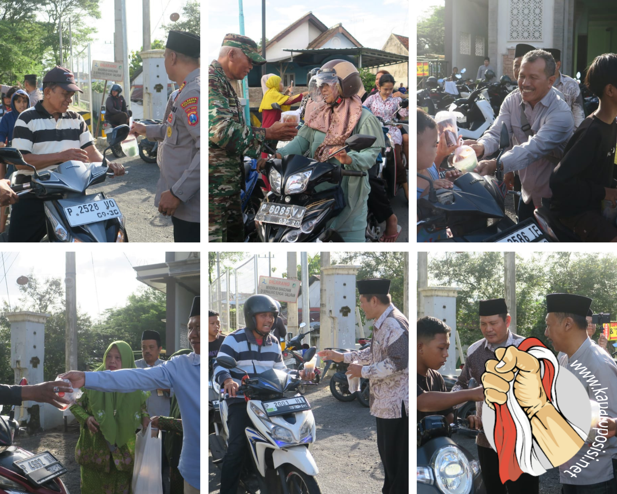 Usai acara seremony semua bergerak menunju pertigaan jalan untuk bersama-sama membagi-bagikan takjil kepada masyarakat. Kepala KUA Khoirud Dawam, S. Ag Camat Iwan Yos Sugiharto, S. Sos., M. Si, Kapolsek AKP Achmad Rudy, SH, Danramil Kapten Inf. Misdari, Korwilker Satdik Supriyadi, Ko. PLKB Ahmad Saidi, SE. Turun ke jalan berbaur dengan yang lain bagi-bagikan takjil kepada masyarakat. Karena memang ramai pengguna jalan yang melintas, 1000 takjil dalam hitungan menit ludes tersalurkan. (r35).