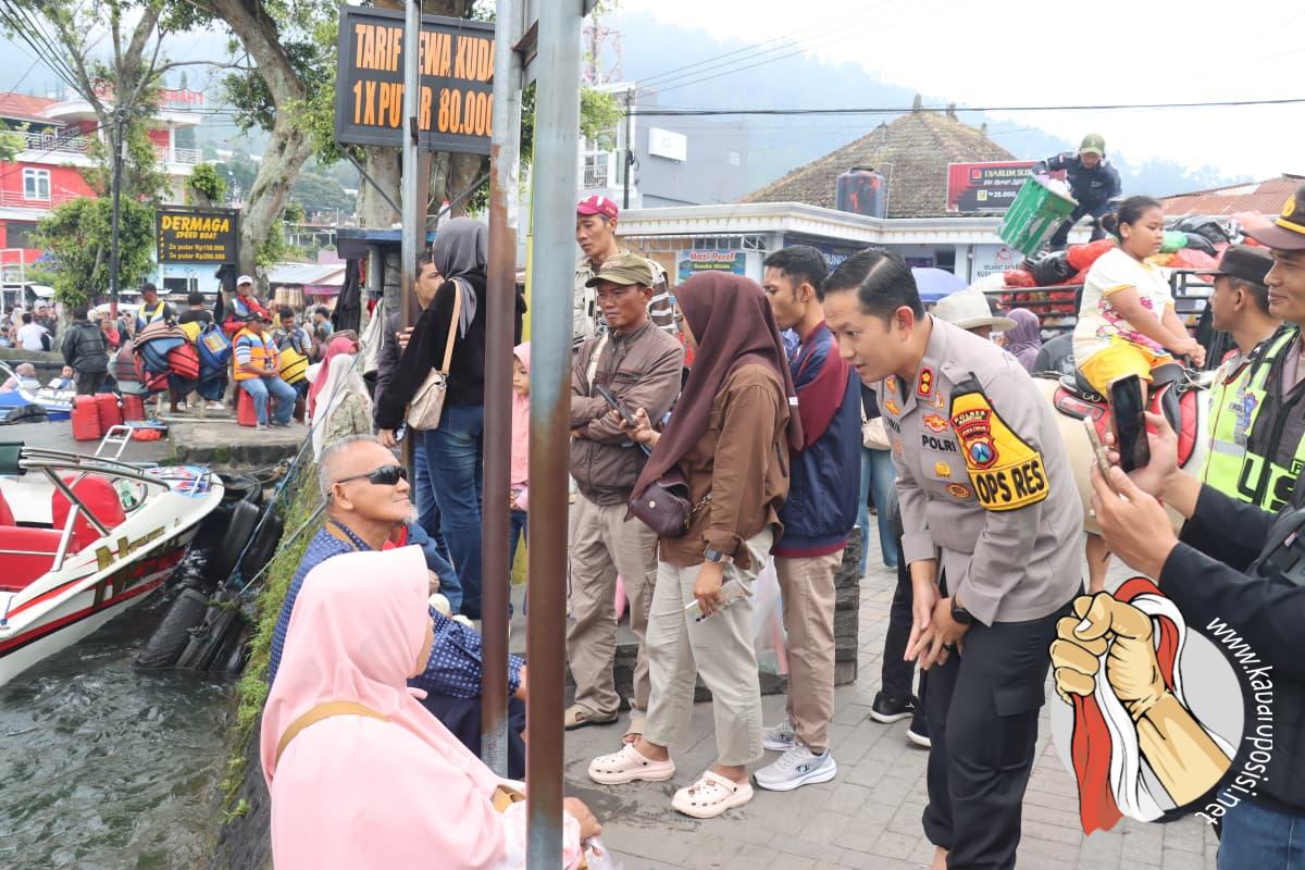 “Kami hadir langsung di tengah masyarakat untuk memastikan situasi tetap aman dan kondusif, khususnya di kawasan wisata yang mengalami lonjakan pengunjung,” ujarnya.