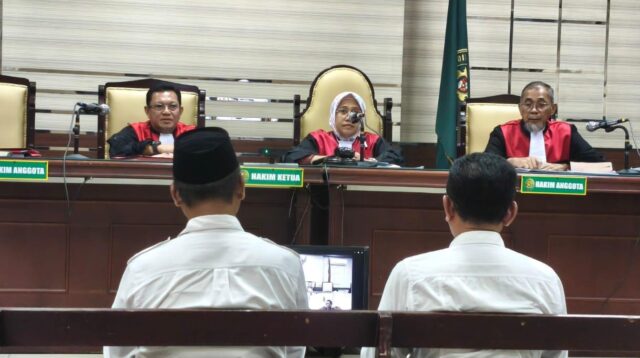 Caption: Tim hukum terdakwa saat membacakan pledoi di ruang Candra Tipikor Juanda Surabaya, pada […]